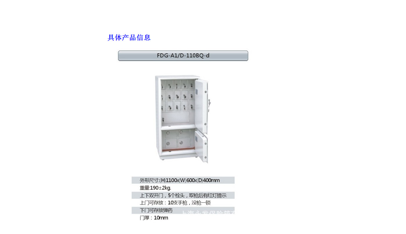 永發(fā)定制手槍柜尺寸說明:1100高*600寬*400深mm(含底座) 重量:190kg