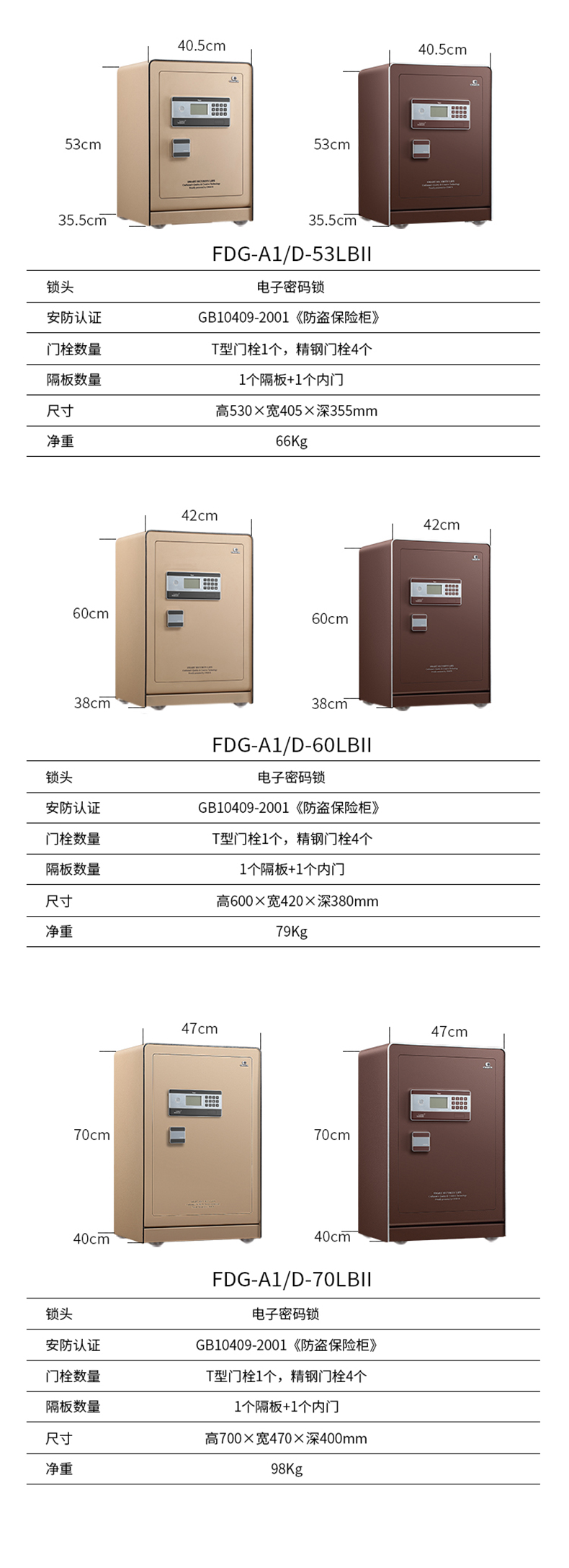 卡嘜樂寶電子系列3C認(rèn)證保險(xiǎn)箱D-60LBII尺寸說明:600高*420寬*380深mm(含底座) 重量:79kg