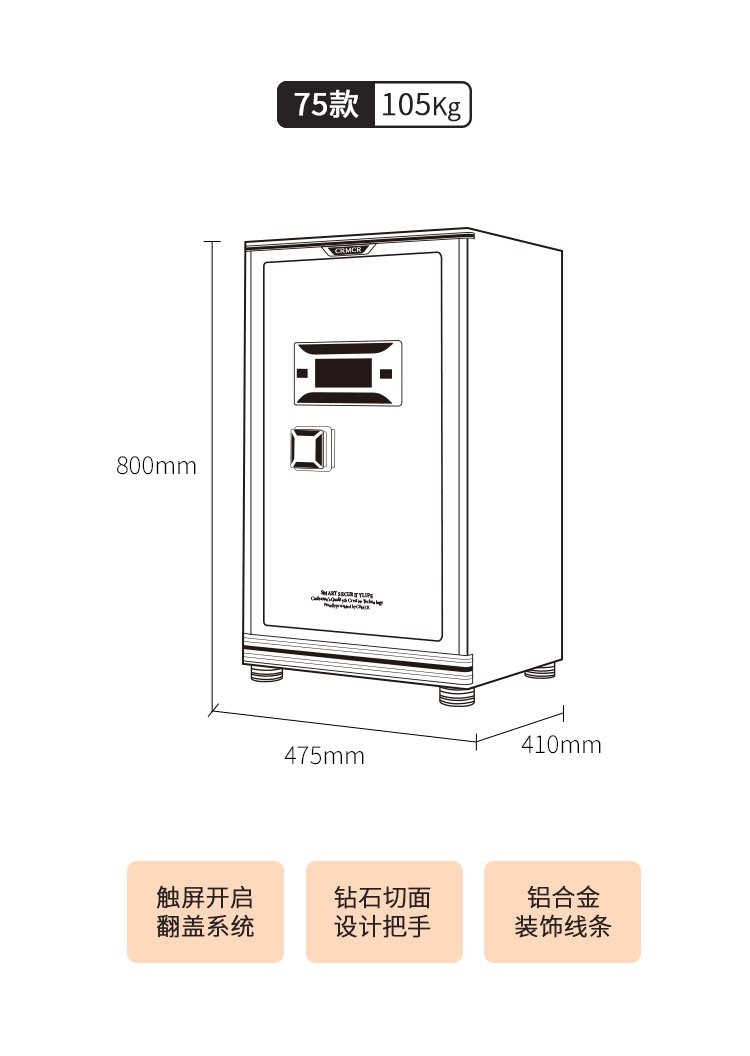 卡嘜百寶指紋+電子密碼系列3C認(rèn)證保險箱D-100HTZW II尺寸說明:1050高*590寬*540深mm(含底座) 重量:175kg